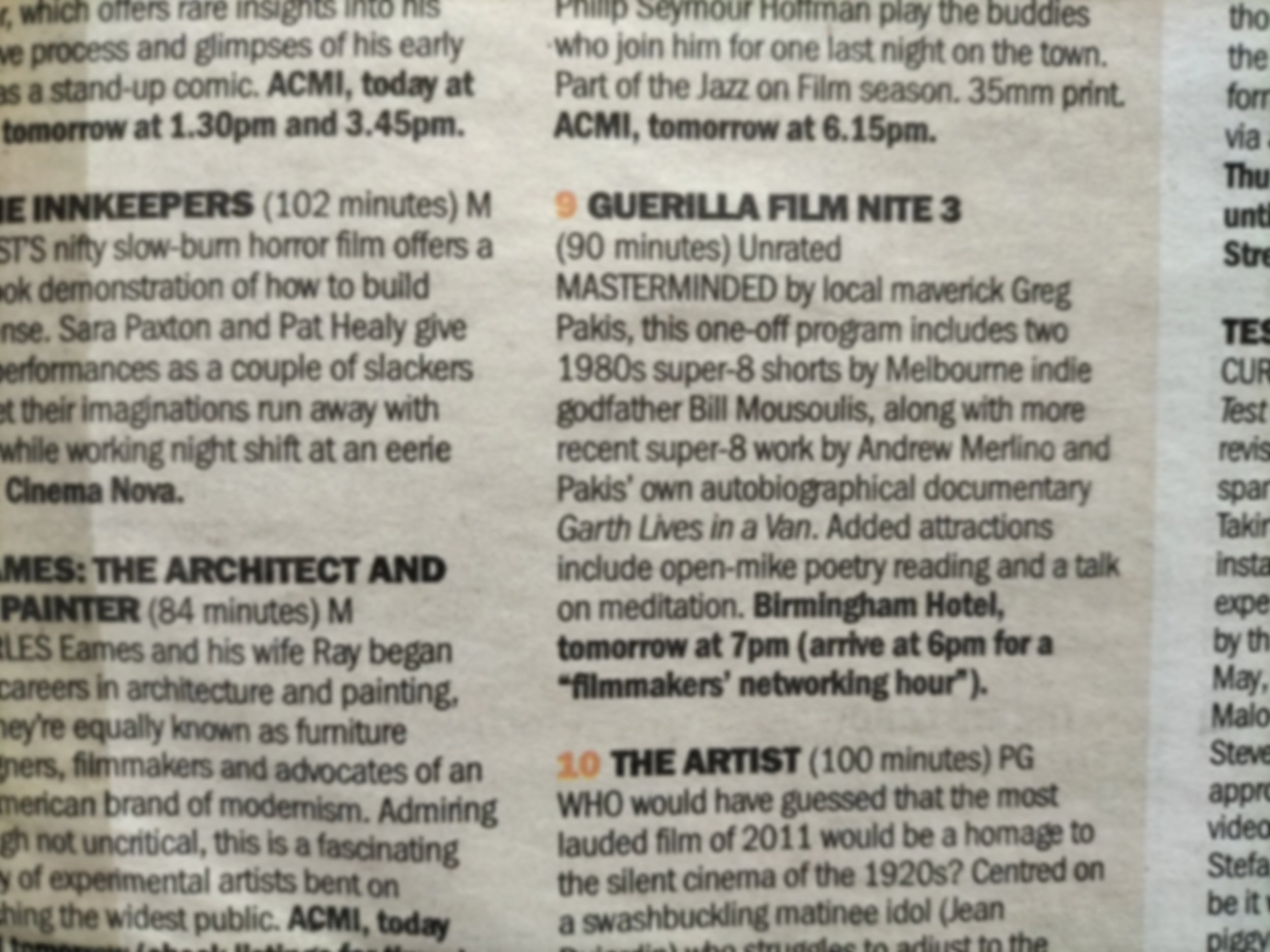 ** (listed in The Age “Top Ten Movie Events”) **