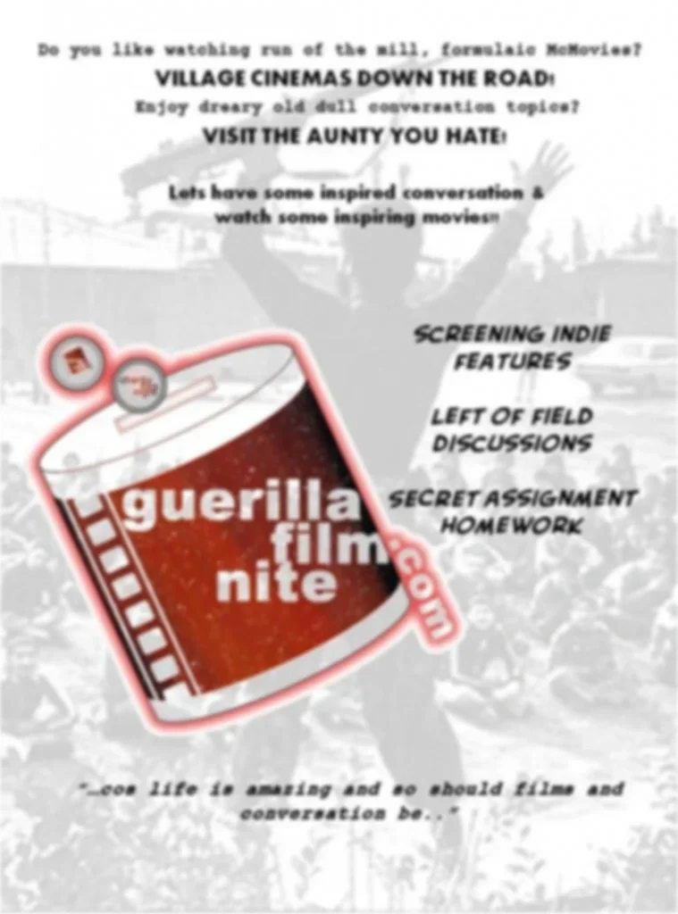 guerillafilmnites are BY DONATION which goes to a cool new organisation with its own guerilla style of making a difference.