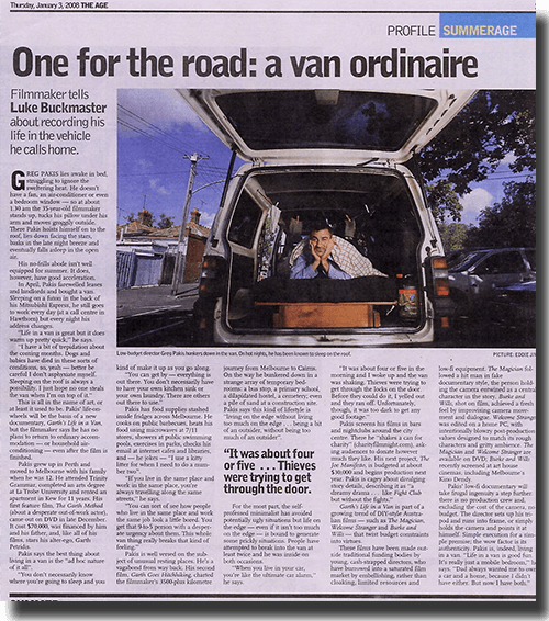 THE AGE article about me living in the van (2007)
