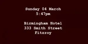 LOCATION : The Birmingham Hotel, 333 Smith Street, (cnr Johnston Street) Fitzroy